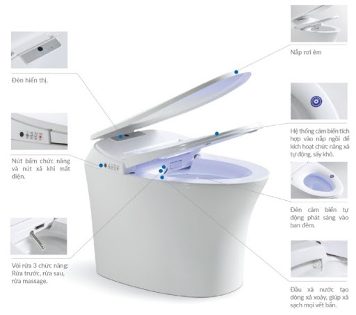 Bên cạnh đó bồn cầu Viglacera nắp rửa thông minh còn có các chức năng rửa massage với vòi di chuyển tới lui, khử mùi, sấy khô, bệ ngồi sưởi ấm và dễ dàng tháo lắp, nắp đống êm tự động đóng mở, nút nhân vệ sinh vòi rửa, tia phun ra theo góc giúp đảm bảo vệ sinh. Bạn có thế xem thêm một số sản phẩm bồn cầu 1 khối viglacera để có sự lựa chọn tốt nhất cho dòng phòng tắm nhà mình.