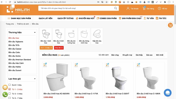 Bước 3: Truy cập vào bộ lọc sản phẩm, bên tay trái website. Tìm kiếm và chọn sản phẩm gia đình có nhu cầu mua, thêm vào giỏ hàng.