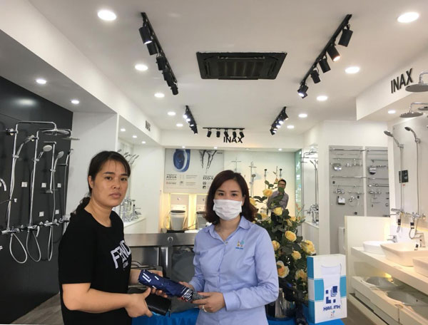 Đứng gần đó là chị Minh – Hoàn Kiếm, chị nói: “Thiết bị vệ sinh của gia đình chị đều mua ở Hải Linh đấy chứ, hôm vừa rồi thấy trên page của bên em có cập nhật chương trình khuyến mại nên sáng sớm chị đã phải qua đây rồi. Sợ bên em đông quá lại phải xếp hàng”